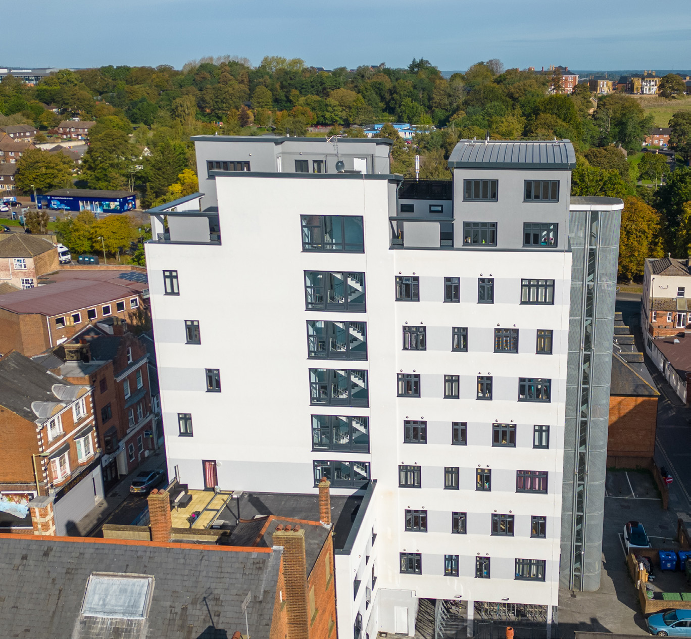 Podium Surveying provided Lead Designer, Contract Administrator and Principal Designer services for a housing provider on this significant refurbishment and external wall insulation remediation project in Aldershot, Hampshire, with the scheme completed in October 2023.